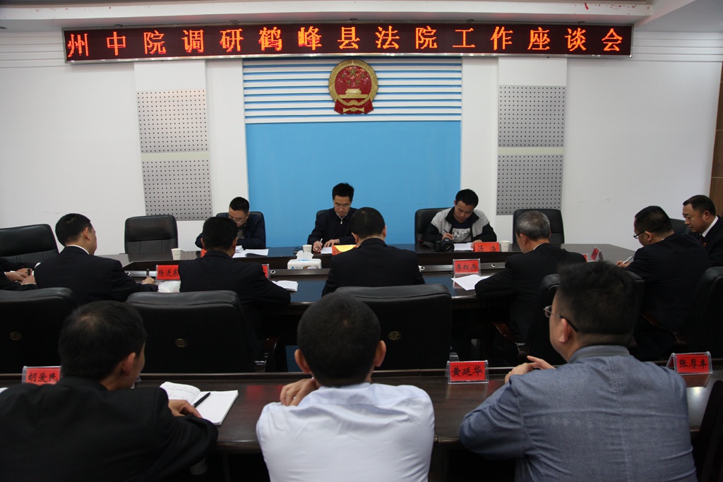 4月27日,恩施州中级人民法院党组书记、院长许一鸣到鹤峰法院调研指导工作,鹤峰县法院党组书记、院长朱华忠陪同。院领导赵拥军、李红兵、杨进东、肖进、向国武、娄国庆、黄虹及中层负责人参加了座谈。