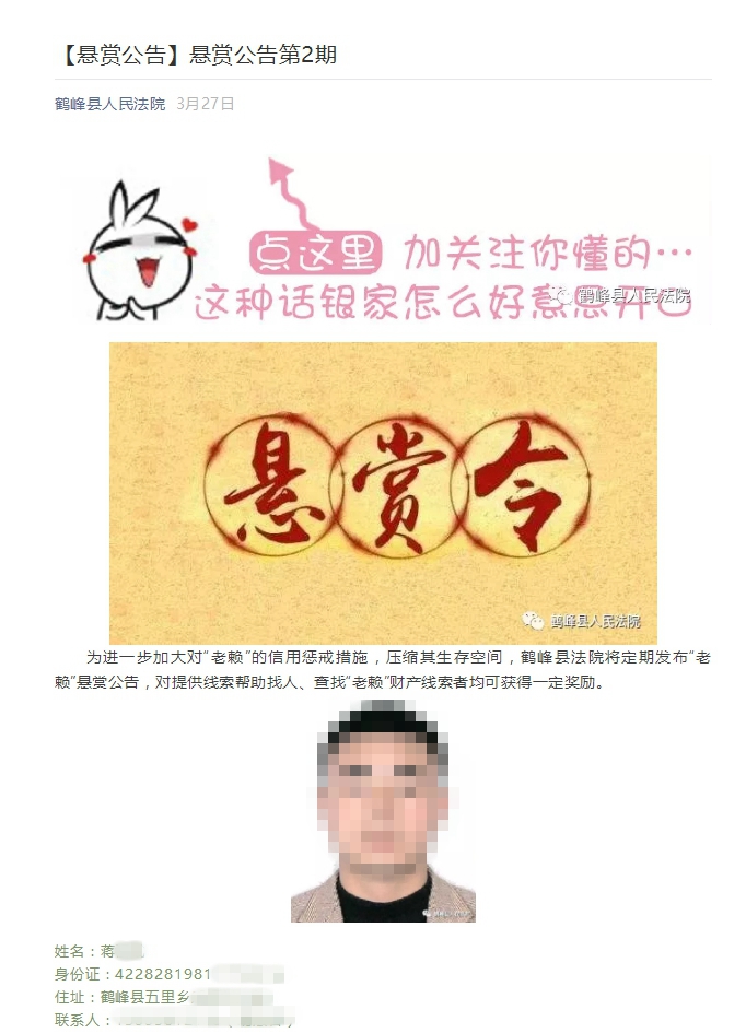 期间,办案人员将其列入了全国失信被执行人名单、发布了悬赏公告、公安协助对其定位追踪、以涉嫌拒执罪向公安移送侦查。迫于以上各种压力,2016年3月2日,蒋某主动来到法院协商处理此事,并在担保人为其担保的情况下达成了分期履行协议,该案以终结本次执行程序结案,蒋某在偿还三期欠款共15万元后就一直未再履行,随后蒋某及担保人均玩起失踪,不再和办案人员联系,这一拖就是几年。2018年5月15日,鹤峰法院启动了代号为“烈焰行动”的执行专项活动,重点清理了历年来终结本次执行程序的案件,该案在恢复执行后,办案人员除了采取之前的措施外,还引导申请执行人对蒋某涉嫌拒执罪提起自诉。